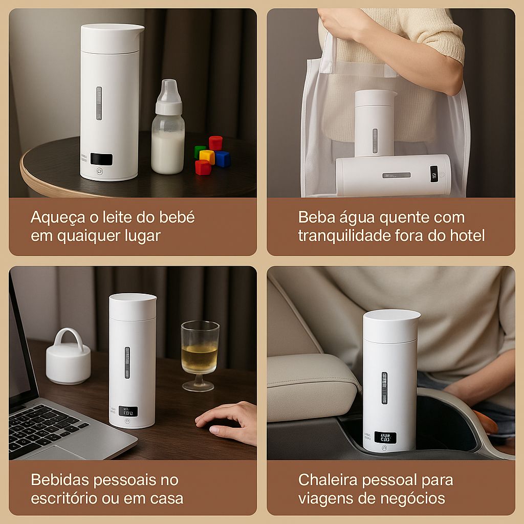 . Compacta, elegante e poderosa, ela aquece suas bebidas favoritas com rapidez e segurança onde quer que você esteja. Ideal para o trabalho, viagens ou uso diário – leve o conforto de uma bebida quente sempre com você